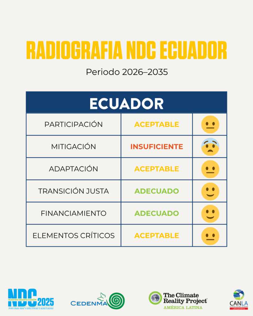 En resumen, la NDC de Ecuador continúa lejos de reflejar un compromiso real con la mitigación profunda y transformadora que exige la crisis climática. La ausencia de metas ambiciosas, medidas estructurales y coherencia con el marco global limita seriamente la contribución del país a los esfuerzos internacionales por evitar un colapso climático.